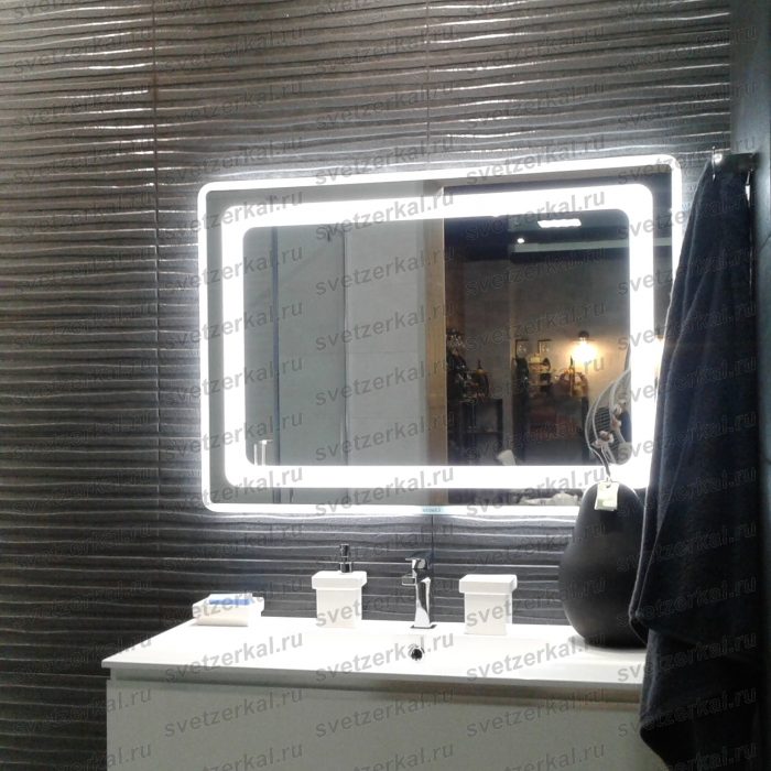 При ширине зеркала 90-100 см рекомендуется располагать включатель на боковой части торца. Если ширина изделия превышает 100 см, то наиболее удобным будет включатель, размещенный на нижней торцевой части.